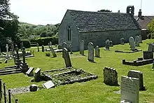 The church is of 12th-century origin, but was considerably restored and rebuilt in the 19th-century.[4] It is formed of a simple single-cell plan, with a 13th-century south porch, and a 19th-century vestry at the west end.[5] Both the walls and the slate roof are made from stone.[6]