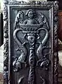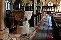 The screen is one of the finest 15th century examples in Cornwall; it has three gates and the cornice of vines and tracery and vaulting are finely carved.[5] The 79 bench-end carvings were executed by Robert Daye between 1510 and 1530 (Pevsner attributes them to 1524 or later) and portray a range of subjects including a Cornish piper and fiddler (Daye's name is given on one but the date is illegible).[6] Also, one of the damaged pew ends was repaired to its former glory by the late local master joiner Douglas Edwards in the 1980s.[7] Langdon (1896) records seven stone crosses in the parish, of which one is in the churchyard.