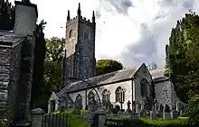 Associated with the church are five structures that are listed at Grade II. These are the northeast entrance to the churchyard,[9] the northwest entrance,[10] the gate, gatepiers, nearby wall and a mounting block at the southeast entrance,[11] and two items in the church yard; the Isbell tomb,[12] and a tombchest and headstone.[13]