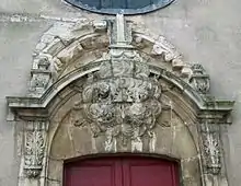 The church stands at the heart of the upper town, which had fortifications in the Middle Ages. Its entrance portal looks out onto a square on which stand a mission cross and the portal of the clergy house, both classified monuments historiques as well.