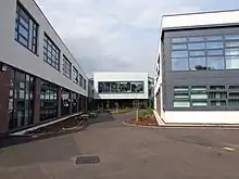 In September 2013, St Teilo's High School officially moved from its location on Llanedeyrn Road to the playing fields of Llanedeyrn High School, with the former site becoming the home of Ysgol Gyfun Gymraeg Bro Edern. The new school was designed by architects Austin-Smith:Lord in a 'five finger' design, to accommodate over 1400 pupils.[4] The school has a curved design which acts as a sound barrier against the noise pollution caused by the large volume of traffic on the nearby A48 road. However, air pollution is an issue due to the school's close proximity to the A48.[5]