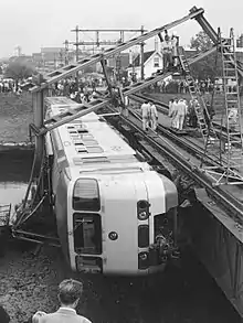 Schiedam train disaster, 1976. The leading coach of set number 2008 was completely destroyed after the accident