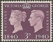 In the United States consideration was given to issuing a commemorative postage stamp at the same time as the anniversary of the Penny Black. While designs were developed the plan was dropped for artistic and political reasons.[4] Many unofficial souvenirs were however produced.[5]