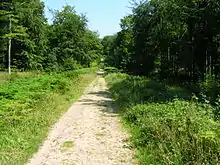 A change of direction occurs to the west of South Holmwood, where the road takes up a line sighted from London Bridge to Pulborough. The only significant deviation is at Okewood Hill, where the road loops to the west for around 200 m (220 yd) to cross a small stream at a convenient fording point.[64][65] The A29, which follows the route through Ockley, also leaves the direct London Bridge-Pulborough alignment at this point, but turns instead to the east.[66] This section of Stane Street is largely flat, with the exception of the hill at Rowhook, 86 m (282 ft) above OD, which the A29 avoids.[15]
