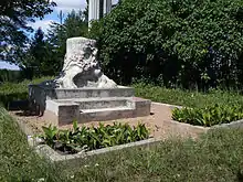 Didžiulis supported the Russian Revolution of 1905 and participated in the activities of the Social Democratic Party of Lithuania.[8] His house was searched by the Tsarist police in February 1906 which found a hectograph and anti-Tsarist social democratic brochures. Didžiulis and his son Antanas were sentenced to lifetime deportation to Siberia in May 1908. After their appeals were denied, they were deported to the Irkutsk Governorate in April 1909.[2] After a few years, Didžiulis was allowed to move near Kansk in the Krasnoyarsk Krai.[8] He was released after the February Revolution in 1917 and moved to Yalta in Crimea where his wife Liudvika and daughter Vanda lived. He was ill and partially paralyzed and received treatments at local sanatoriums. The family was finally allowed to return to Lithuania in 1924. Didžiulis moved the native Griežionėlės where he died on 19 May 1927. He was buried on a hill in nearby Padvarninkai.[11] His tombstone, an oak stump made of cement, was designed by Bernardas Bučas in 1933.[2]