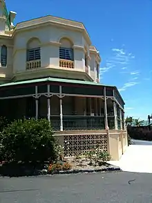 In the early 1920s, Blume subdivided and sold off the bulk of the property, and in 1926 the house, on 4.5 acres of land, was sold to the Order of the Sisters of the Presentation in Queensland for £22,000. The Presentation Sisters operated a convent and primary school (St Rita's Convent School) on an adjacent site and converted Stanley Hill into a boarding school and secondary school for girls in September 1926.[2][3] In subsequent years the school expanded, with the first new building erected in 1939. The attached, single-storeyed kitchen and service wing was demolished in 1968 to make way for a new classroom block, and the coachhouse and stables no longer survive. None of the post-1926 structures is included in the entry in the Heritage Register.[1]