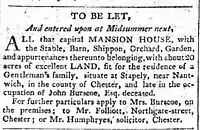 John Burscoe built Stapeley House in about 1788.[3] He was born in 1737 in Wybunbury. His father was James Burscoe who owned a house in Stapeley and his mother was Katherine Skerrett.[4] In 1737 his father was killed when the Market House in Nantwich collapsed.[5]