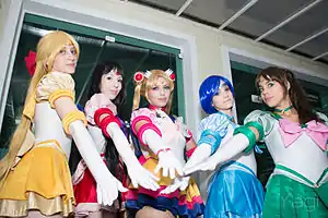 The case attracted the attention of interest groups which filed fifteen amicus curiae briefs.[40] Among Star Athletica's advocates was Public Knowledge, which helped draft a brief representing the views of costuming groups (particularly cosplayers of the Royal Manticoran Navy and the International Costuming Guild) which were concerned that a ruling in Varsity's favor could endanger their craft. Much of cosplaying involved recreating designs recognizable from pop culture.[41][42] When the legality of creating costumes based on pop culture had been questioned, the Copyright Office decided that costumes were uncopyrightable, useful articles for the practical purpose of covering the body;[43] there was debate over this rationale.[44][45] Cosplayers also cited fair use to justify their hobby.[46] The Royal Manticoran Navy filed a separate supporting brief in Star Athletica which emphasized fair use in costuming, voicing a concern that allowing clothing-design copyrights would further strengthen Varsity Brands's position in the cheerleading industry,[47][48] one commonly described as monopolistic because of its 80-percent market share.[28][48][49][50][51]