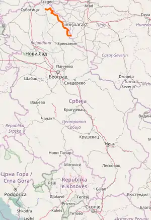 | 10407 | 11.468 km (7.126 mi) | 110.696 km (68.783 mi) | Srpski Itebej – Serbia – Romania border at Međa |