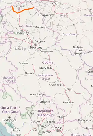 | 10509 | 6.557 km (4.074 mi) | 81.131 km (50.412 mi) | Senta (Subotica road) – Čoka (Senta) |