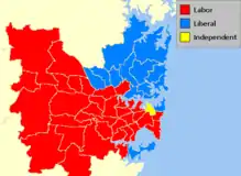 Results of the 2007 New South Wales state election showing the districts in Sydney