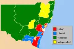Results of the 2007 New South Wales state election showing the state electoral districts