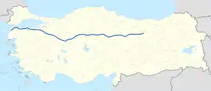 D.200 is a west to east state road in Turkey. It starts at Çanakkale at Dardanelles strait extending D-550 and ends 10 km (6.2 mi) west of Refahiye, Erzincan Province joining with D-100. Since it runs all the way from west to east it crosses some north to south state roads such as D-555, D-565, D-575, D-160, D-650, D-675, D-260, D-750, D-765, D-785, D-795, D-805, D-850 and D-865.