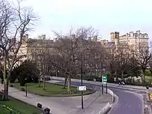 Listed buildings on the north-west side of the street include York railway station,[4] The Principal York hotel,[5] and a statue of George Leeman.[6] The south-east side is mostly taken up by the city walls, along with the North Eastern Railway War Memorial,[7] and the side of the Grand Hotel and Spa.[8]