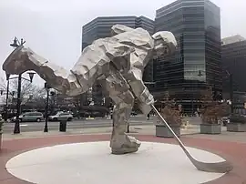 - ↑ Santiago, Katherine (August 18, 2009). "22-foot-tall hockey player sculpture installed outside Prudential Center". nj.