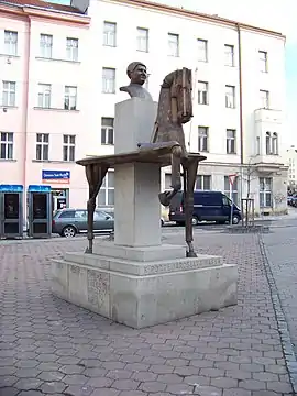 The statue of Jaroslav Hašek (Czech: Socha Jaroslava Haška) is an outdoor monument and equestrian statue by Karel Nepraš and Karolína Neprašová, installed at Prokopovo náměstí in the Žižkov district of Prague, Czech Republic. The sculpture was installed in 2005, having been completed by Nepraš's daughter Karolína after his death. It is located in an area where Hašek lived during writing of his famous novel The Good Soldier Švejk.[1]