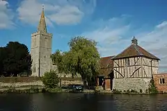 The church of Saint James was originally a 12th-century church with short rectangular chancel and aisleless nave, the chancel afterwards being rebuilt and the tower and aisle added in later years.[1] The nave windows are all of 14th-century type, apparently copies or restorations of work of that period, and the tower and spire are of late 14th-century date with a later west window.[1] The church was heavily restored in 1860, when the chancel was rebuilt and the vestry added.[1]