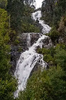 Steavenson Falls, a waterfall on the Steavenson River, is located 4 kilometres (2.5 mi) southeast of Marysville, Victoria, Australia. The falls are one of the tallest in Victoria, with five cascades, a total descent of 122 metres (400 ft), the last having a clear drop of more than 21 metres (69 ft).[1][2]