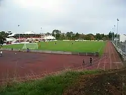 Around the pitch is a narrow 400-metre running track with four lanes on each straight. It is the narrowest 400m track in the United Kingdom.[3]