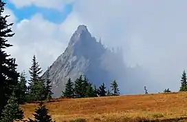 Steeple Rock[2] is a 200 feet (61 m) basalt pillar in the Olympic Mountains, and is located in Clallam County of Washington state. It sets next to the Obstruction Point Road on Hurricane Ridge within Olympic National Park. It's situated midway between Eagle Point and the Hurricane Ridge Visitor Center. Precipitation runoff drains into tributaries of the Elwha River and Morse Creek, thence into the Strait of Juan de Fuca.