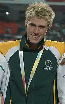 Born in Cape Town, he attended Paul Roos Gymnasium.[2] Brits competed in the long jump from a young age and was twice a participant at both the World Youth Championships in Athletics (2007, 2009) and the World Junior Championships in Athletics (2008, 2010).[3] He was a silver medallist in the long jump at the 2009 World Youth Championships in Athletics and took gold at the 2008 Commonwealth Youth Games.[4][5][6]