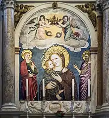 The dates of his birth and death are uncertain. He traveled to Treviso with his brother around 1339, later moving on to Padua, where his Madonna del Pilastro is located in the Basilica of Saint Anthony of Padua.[1] It is in the style of the Byzantine icons of Eleousa, mother of Mercy. Additional frescoes in the Chapel of the Ark were lost due to neglect and humidity,[2] and destroyed in 1500 during the renovation of the building by Andrea Briosco.