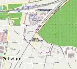 Steinstücken (German: [ˈʃtaɪ̯nˌʃtʏkŋ̍] , literally "Stone Pieces"), with approximately 300 residents, is a small outlying neighborhood of the Wannsee district in the Berlin borough of Steglitz-Zehlendorf. From the division of Germany in 1949 until a connecting corridor was created in 197172, Steinstücken was the only permanently inhabited of twelve original exclaves of West Berlin in East Germany, while West Berlin itself was an enclave controlled by the Western Allies, surrounded by East German (GDR) territory.