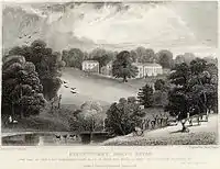 From the Glorious Revolution of 1688 to the Reform Act of 1832 the county parliamentary representatives were chosen effectively from only ten great families, mostly territorial magnates. The three most dominant of these were the Bampfyldes of Poltimore House and North Molton, the Courtenays of Powderham Castle, and the Rolles of Stevenstone and Bicton.[4] The Rolles were not from the mediaeval aristocracy as were the Courtenays, but were descended from an able lawyer and administrator of the Tudor era, as were the Russells, later Earls and Dukes of Bedford. Both Russells and Rolles acquired much former monastic land in Devon following the Dissolution of the Monasteries. Indeed, the Rolles were in the opinion of Hoskins (1954) "second only to the Russells in the extent of their monastic and other lands and in time were to surpass them".[5]