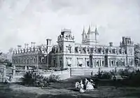 The house was demolished in 1868 by Hon. Mark Rolle (died 1907) who erected in its place between 1868 and 1872 to the design of Charles Barry Jr. (died 1900) a Victorian mansion in the "French Chateau style" (or "Franco-Italian style" as it was termed by a contemporary issue of Building News,[27]) widely considered today to have been a building of little architectural merit. It may be compared, but in simpler form, to the Rothschild family's slightly later Waddesdon Manor, which was however designed by a French architect. It sat within a deer park of 370 acres containing a large quantity of large and valuable trees.[28] In the opinion of Hoskins writing in 1954: "Mark Rolle rebuilt the house again in the worst style of the time. The richest man in Devon built himself the ugliest house".[9]