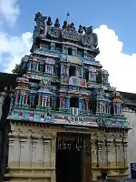 Sthalasayana Perumal Temple (also called Arulmaakadal Perumal Temple) is a Hindu temple dedicated to the god Vishnu located near Kollumangudi, Tamil Nadu, India. It is located 2 km away from Kollumangudi, 40 km away from Kumbakonam and 10 km from Karaikal. Constructed in the Dravidian style of architecture, the temple is glorified in the Nalayira Divya Prabandham, the early medieval Tamil canon of the Alvar saints from the 6th–9th centuries CE. It is one of the 108 Divya Desams dedicated to Vishnu, who is worshipped as Sthalasayana Perumal and his consort Lakshmi as Thirumagal Nachiyar. A granite wall surrounds the temple, enclosing all the shrines. There is a four-tiered rajagopuram, the temple's gateway tower, in the temple.