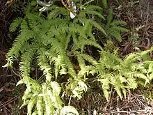 Sticherus lobatus, known as the spreading fan fern, is a small fern found in eastern and southern Australia. It is a common and attractive plant, similar to S. flabellatus but with additional lobed segments.[1] It often forms colonies in open forest areas or on the edge of rainforests.[2]