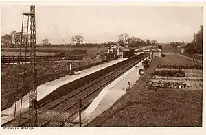 Stickney railway station is a former station that served the village of Stickney, in Lincolnshire, England. The station was on the Kirkstead and Little Steeping Railway which ran between Lincoln and Firsby. The line was sometimes called the "New Line". It was opened in 1913 and closed in 1970. The site has since been redeveloped with nothing left of the station. [1] [2] [3] [4]