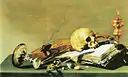 Open book, Skull, Violin and Oil Lamp Pieter Claesz 1629 private collection 16