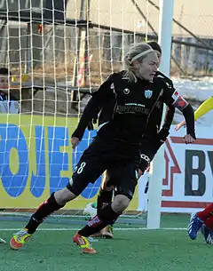 Since 2009, Segerström has played for Kopparbergs/Göteborg FC in the Damallsvenskan, the highest division of football in Sweden.[3] During her first season with the team, she started in all 20 matches in which she appeared.[3] Göteborg finished fourth during regular season play with a 14–3–5 record.[4]