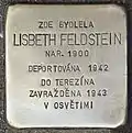 HERE LIVED LISBETH FELDSTEIN BORN 1900 DEPORTED 1942 TO THERESIENSTADT MURDERED 1943 IN AUSCHWITZ |