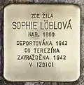 HERE LIVED SOPHIE LÖBLOVÁ BORN 1880 DEPORTED 1942 TO THERESIENSTADT MURDERED 1942 IN IZBICA |