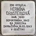 HERE LIVED HERMÍNA ORNSTEINOVÁ BORN 1880 DEPORTED 1942 TO THERESIENSTADT MURDERED 18.12.1943 IN AUSCHWITZ |