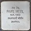 HERE LIVED PAVEL MEISL BORN 1902 POLITICAL PRISONER DIED |