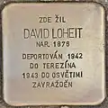 David Loheit was born on 25 January 1876. His parents were Sara and Tzvi Loheit. He married Josefine née Adler, born on 16 February 1882 in Horažďovice. His wife had ten siblings.[45] David Loheit and his wife had three children: Egon (born 1907), Elsa (born 1909) and Olga (born 1910). He was first deported in 1942 to Theresienstadt concentration camp and 1943 to Auschwitz concentration camp, where he lost his life.[46]
