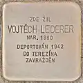 Vojtěch Avraham Lederer, also Adalbert, was born on 26 August 1860 in Lažany in the Strakonice District. His parents were Eva and Shimon Lederer. He was a merchant and married to Žofie, also called Reisl. On 26 November 1942, he, his wife and his sister-in-law Regina Ledererová were deported from Klatovy to Theresienstadt concentration camp by transport Cd. His transport number was 138 of 651. His wife died in Theresienstadt on 2 February 1943. His sister-in-law was deported to Auschwitz on 15 December 1943 and murdered there. Vojtěch Lederer lost his life in Theresienstadt on 18 December 1943.[37][38]