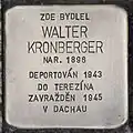 HERE LIVED WALTER KRONBERGER BORN 1896 DEPORTED 1943 TO THERESIENSTADT MURDERED 1945 IN DACHAU |