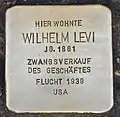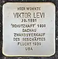 HERE LIVED VIKTOR LEVI BORN 1891 'PREVENTIVE CUSTODY' 1938 FORCED SALE OF BUSINESS ESCAPE 1939 USA |