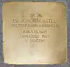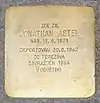 HERE LIVED JONATHAN ASTEL BORN 18.06.1931 DEPORTED 30.6.1942 TO THERESIENSTADT MURDERED 1944 IN AUSCHWITZ |