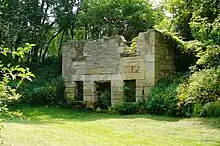 In 1905 Portland cement began to be produced in Waterloo, Iowa. The use of Portland cement in place of quarried stone had an adverse effect on the economy of the Stone City and one by one the quarries began to shut down.[8] During the next half century, nature reclaimed most of the quarries. Columbia Hall was purchased in the 1930s and torn down in 1938 to use the stone elsewhere. In 1963 the Green Mansion was tragically damaged by fire and torn down in the 1990s.