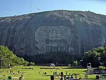 In 1914, editor John Temple Graves wrote in the Atlanta Georgian, suggesting the establishment of a memorial to Confederate General Robert E. Lee on Stone Mountain, "from this godlike eminence let our Confederate hero calmly look history and the future in the face!"[3] Others who called for the establishment of a Confederate memorial there included William H. Terrell, an Atlanta attorney who believed that while the North had spent millions of dollars on monuments to the Union, the South had not sufficiently honored Confederate heroes. Also active in the early days of the Stone Mountain proposal was Helen Plane (1829–1925), who had been a belle from Atlanta before the war, and whose husband had given his life at the Battle of Antietam in 1862. She devoted the remainder of her life to preserving the memory of the Southern cause.[4]