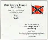 The Association hired Augustus H. Lukeman as replacement sculptor;[39] all of Borglum's work was eventually blasted away.[40] Despite the dispute with Borglum, the Association proceeded to market the half dollars; it hired New York publicist Harvey Hill to run the campaign.[16] The Association hoped for the opportunity to present the first coin to President Coolidge in person as a means of overcoming the bad publicity; White House officials warily declined, writing that "no good purpose would be served by a formal presentation".[41] The half dollars were officially released on July 3, 1925 (though some were displayed as early as May);[22] they were sold at a price of one dollar.[16] They were sent to 3,000 banks by the Federal Reserve, with the proceeds from sales credited to the Association.[32] White Southerners applauded the piece as symbolizing sectional reconciliation, the federal government paying homage to the South's Confederate heritage.[42]