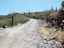 A historical task force has discovered portions of the road in parts of McDowell Mountain Park and near the old Brown’s Ranch location near north Scottsdale. Another discernible section runs between Stagecoach Pass at Windmill Road northwest to Cave Creek Road ending by a gate going into the Carefree Airport. Running east to west, south of Cave Creek Road, is a short section of the Military Road which is part of the old Stoneman Road. It originally ran toward Cave Creek and by what is thought to be a military remount station from the 1870–1890 era. Other than that, the road has pretty much succumbed to the sands of time.[1][2][3]