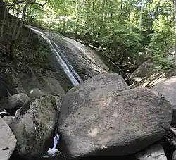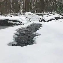 Stoney Creek rises on the Perkins Run divide in Westwoods in New Castle County, Delaware and flows southeast to mouth at the Delaware River just north of Fox Point State Park.[2] It passes through in Bellevue State Park.[6] Tukohtene Falls (Lenape for round mountain) is a ten-foot waterfall located in the park.