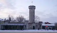 The "Water fort" (Vattenborgen) lies south of Fredrick Church. It is a neoromantic building patterned after a redoubt in Norman style. It was built 1861 - 1863 as a water reservoir on Trossö in Karlskrona in connection with the construction of waterworks from the mainland. Today the building houses the restaurant 'Vattenborgen by Persson'.