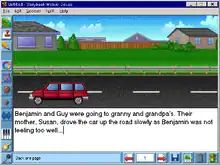 Storybook Weaver is a program that is intended to enable and motivate children to easily create their own stories on a computer. The most noticeable feature of the game is the sizable space allowed for illustrations on each page of a story. The game offered hundreds of backgrounds, objects and characters that could be selected from easy-to-use categories and placed anywhere on the page through a simple click-and-drag process. Backgrounds in the original featured mostly natural, outdoor locations, with which players could switch between day, night, dawn and dusk effects on the landscape. Users could piece together items such as walls and floors to create indoor settings for stories.